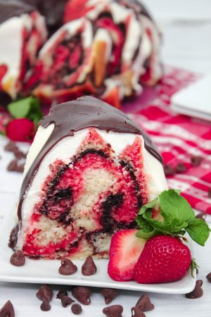 grease and flour 12-cup bundt cake pan. Blend cake mix (dry), water,